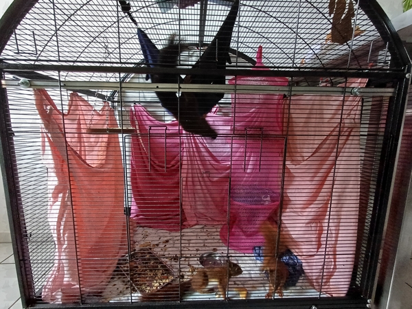 Sorgenkind Nuki sitzt immer noch in der Quarantänestation (Foto nicht möglich, sie braucht nach wie vor sehr viel Ruhe). Erst hatte sie Durchfall, den konnten wir stoppen, dann Fellprobleme, konnten wir auch stoppen, die kahle Stelle wurde nicht größer. Jetzt hat sie wieder Durchfall und erbricht sich, außerdem kommt sie nicht wirklich ans „klettern“. Auch mit ihr waren wir bei der TA. Wir warten jetzt noch eine Woche ab, dann müssen wir entscheiden, was mit ihr passiert.