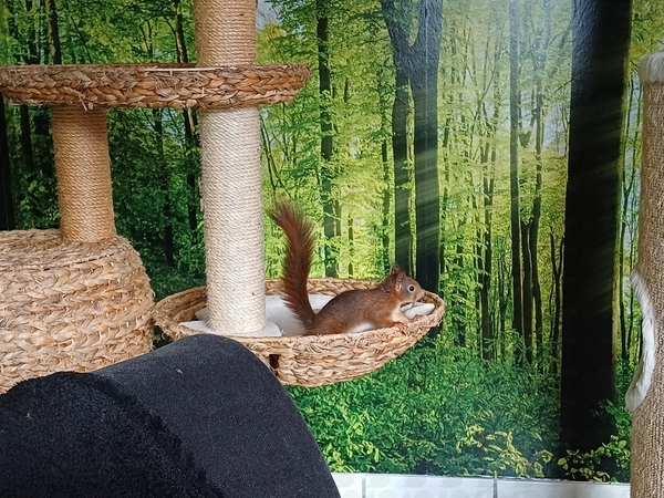 Hier jetzt aber zu der armen Eichkatze, Lucy, morgen konnten wir einen Termin bei der TA ergattern, wir hoffen sie so lange „am Leben zu erhalten“. Sie hat über den ganzen Körper verteilt kahle Stellen und wimmert: