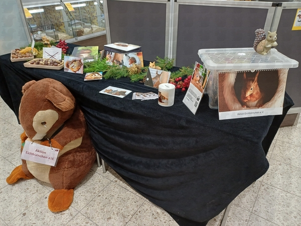 Unser Eichhörnchenstand läuft gut, dank der tatkräftigen, verbalen Unterstützung von Claudi.