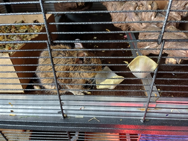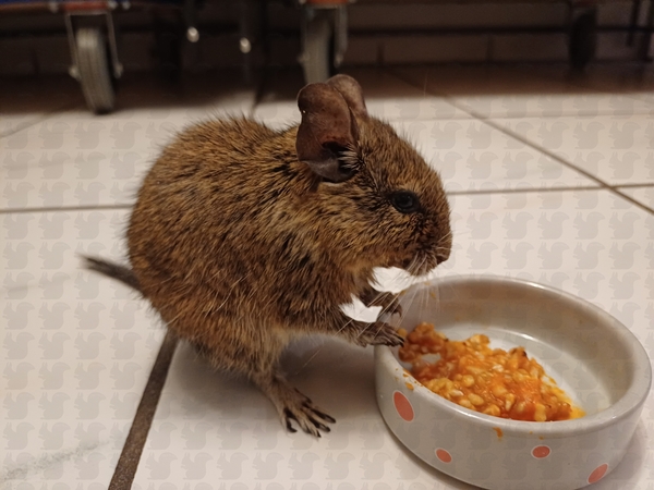 In der Zwischenzeit baute leider einer unserer „normalen“ Haustiere, Degu Riesel, extrem ab. Wir haben ihn versucht mit Brei zu ernähren, am Montag hörte er auf zu fressen und wollte auch nicht mehr trinken. Es war nichts mehr zu machen. Er starb in der Nacht auf heute.