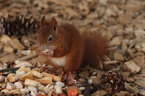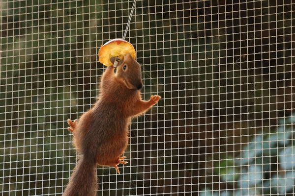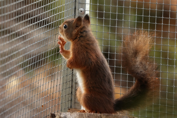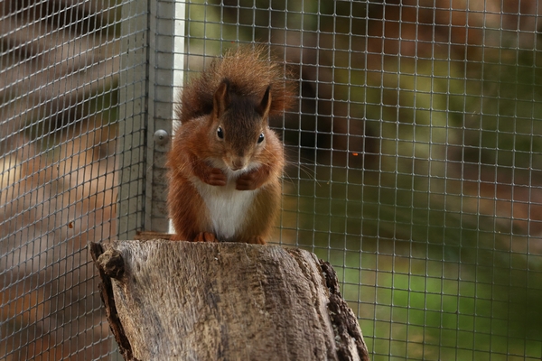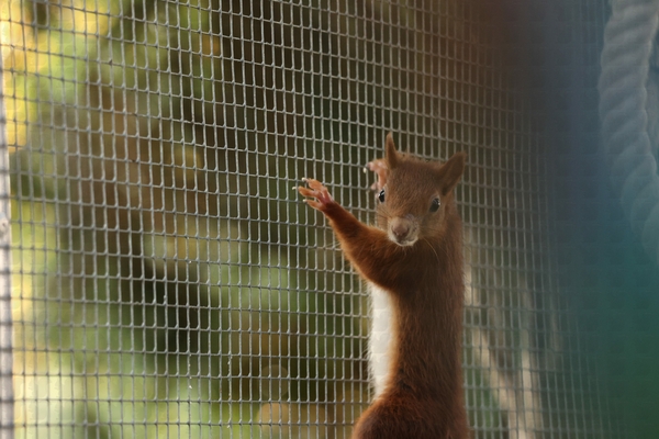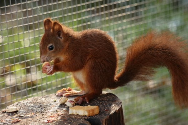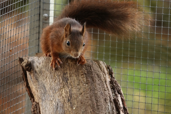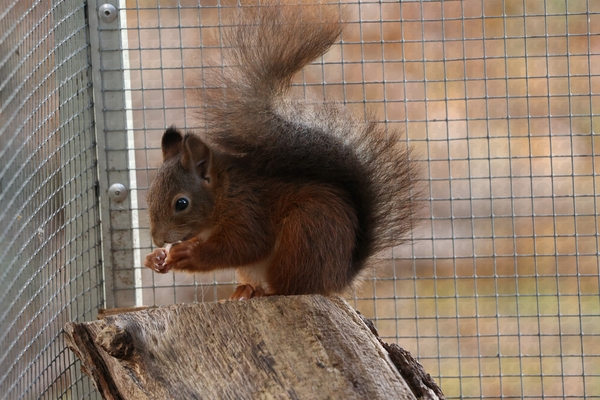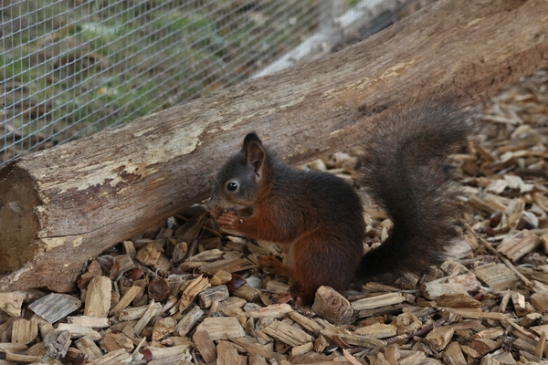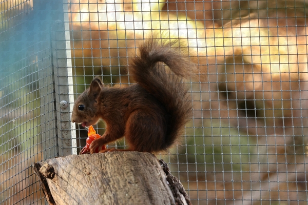 Mit Martina haben wir das nächste Hörnchen in der Überwinterungsvoliere in Husen. Sie hat sich mittlerweile seit letzten Donnerstag eingelebt, ist leider, die Schmalste, aber Älteste im Gehege und leider auch sehr stereo. Durch ihr geringes Gewicht wäre es Unsinn sie nach draußen in die Freiheit zu lassen, das würde sie nicht schaffen und schon gar nicht jetzt, keine Futtervorräte gesammelt, keinen warmen Kobel usw.. Sie kam am 13.08. zu uns uns und hat wirklich alle Krankheiten mitgenommen, die es gibt. Den Pilz haben wir behandelt, Nase und Pfoten sind noch kahl, aber das wächst jetzt über Winter nach. Die anderen 3 (Trick, Track und Detlef) sind auch schwer unterwegs, an den Baumstamm wollen sie noch immer nicht. Kommt vielleicht noch. Durch das schöne Wetter konnten wir so einige Bilder machen: