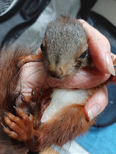 Fangen wir mit den Tiefs an: gestern kam ein Eichkater von einer TA-Praxis in Unna hier an. Er wurde von einer unbekannten Finderin gebracht, angeblich, von einer Katze „angeliefert“, Kratz-/Maulspuren der Katze waren erst mal nicht ersichtlich, wenn man genauer hingeschaut hat, dann doch. Ich holte das Hörnchen in der TA-Praxis ab. Er war sehr schlapp und müde, ist aber nicht unüblich, wenn sie hier ankommen. Er bekam erst mal nur Elektrolyte, das ein oder andere Zähnchen war abgebrochen, auch das im Normalfall kein Problem. In der Nacht hörte ich mein so ungeliebtes Geräusch: hier übergibt sich ein Eichhörnchen. Das schlimmste Geräusch, was man sich vorstellen kann, wenn man weiß, was es bedeutet, im Lauf der Jahre kennt man Eichhörnchengeräusche! Also erst mal rausfinden, wer er ist. Es war der Kleine aus der TA-Praxis. Was hat er alles rausgebrochen: gelblich-weißer Schleim, aufgeschäumt, er hat jämmerlich gelitten und gejammert. In den frühen Morgenstunden ist er verstorben. Da er bei mir nur Elektrolyte bekommen hat, scheint es sich hier mal wieder um einen Selbstversuch des Päppelns mit Kuhmilch gehandelt zu haben, die für Eichhörnchen absolut tödlich ist. Siehe dieses Beispiel. Deshalb, bitte lasst doch diese Selbstversuche!!! Er war ein wunderschöner Eichkater, das kurze Leben hat er durch den Selbstversuch nicht verdient!!! Ein ganz großer Appell an alle Finder:innen!!!